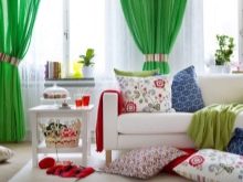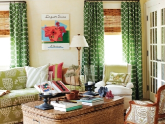 - En allant au magasin, il est facile de se perdre et d'acheter une version complètement inappropriée de rideaux verts. Pour l'éviter penser à l'avance à la forme et à la couleur du produit. Si votre intérieur est déjà présent avec des accents de couleurs vives, choisissez un vert terne monochromatique aux couleurs chaudes. Et pour diluer l'ensemble strict, achetez des rideaux verts avec un ornement complexe.