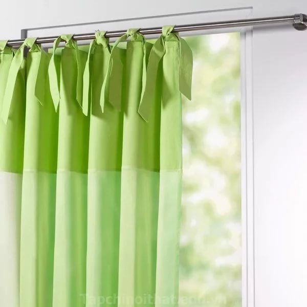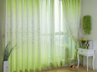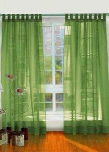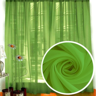 - organza - tissu transparent brillant ou mat. Cher et désagréable au toucher, mais durable et beau en apparence. Un tel tissu vert clair réfléchit la lumière, vous protégeant des regards indiscrets;