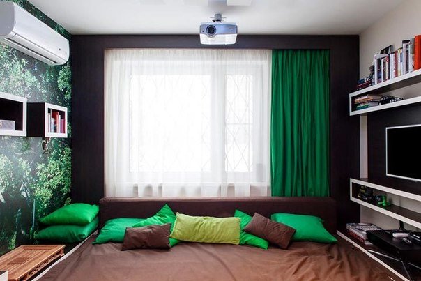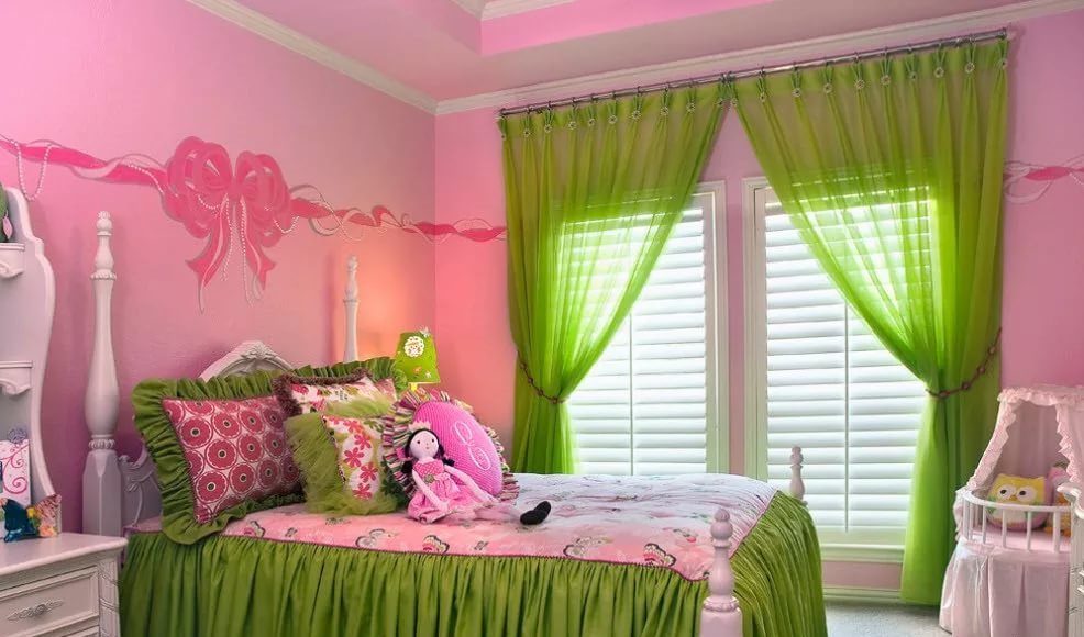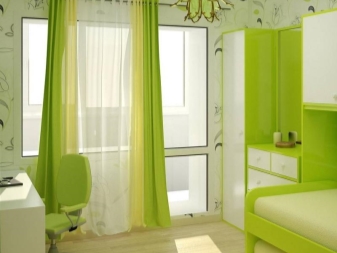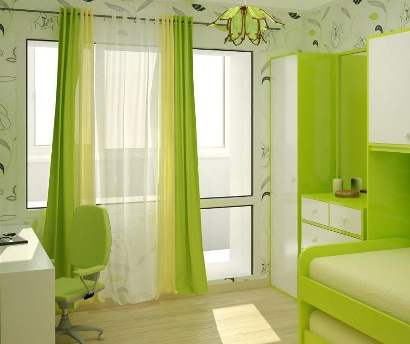 - Enfants. Ici, des nuances de vert chaudes seront appropriées, par exemple la chaux. Et pour faire plaisir à l’enfant et pour que l’intérieur ne soit pas ennuyeux, choisissez des rideaux avec un motif naturel. Pour les enfants actifs, choisissez des rideaux d'olivier. Ils rassurent et insistent sur le mode académique.