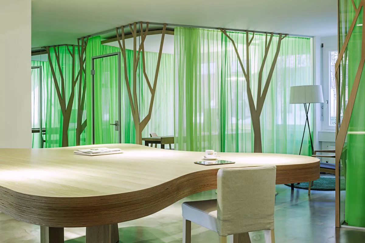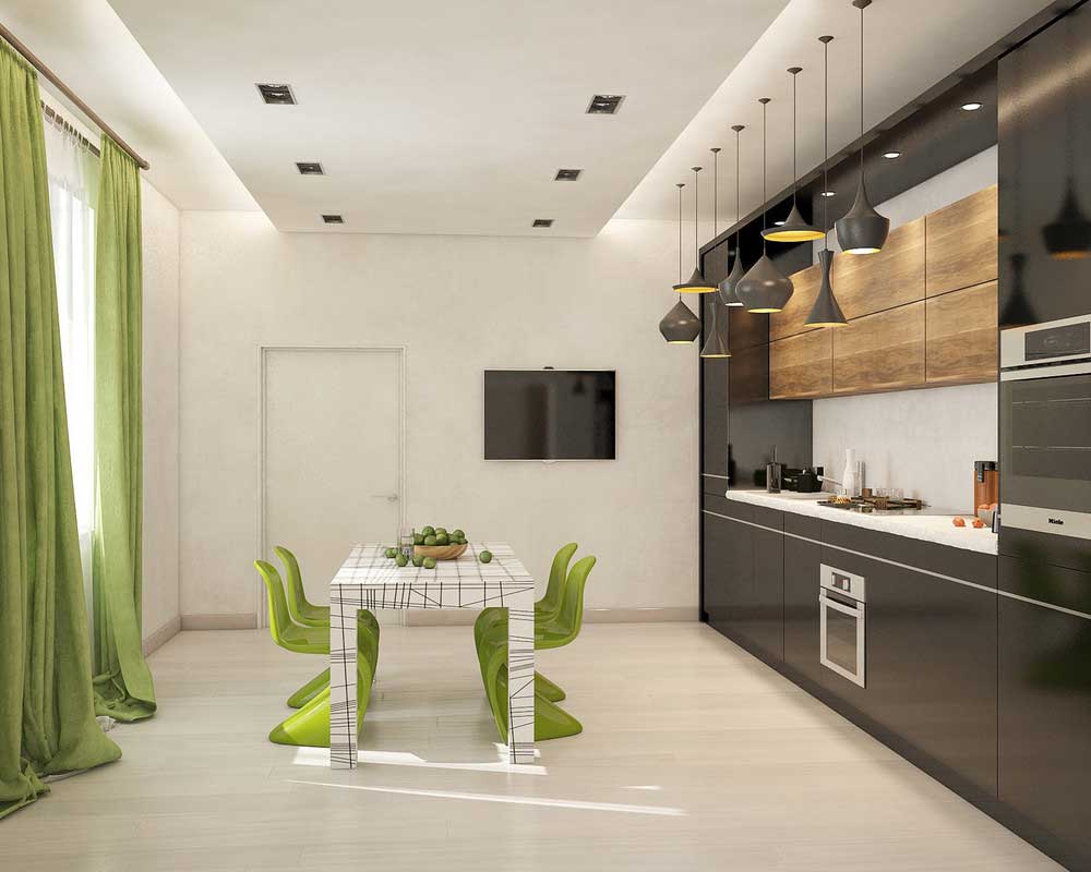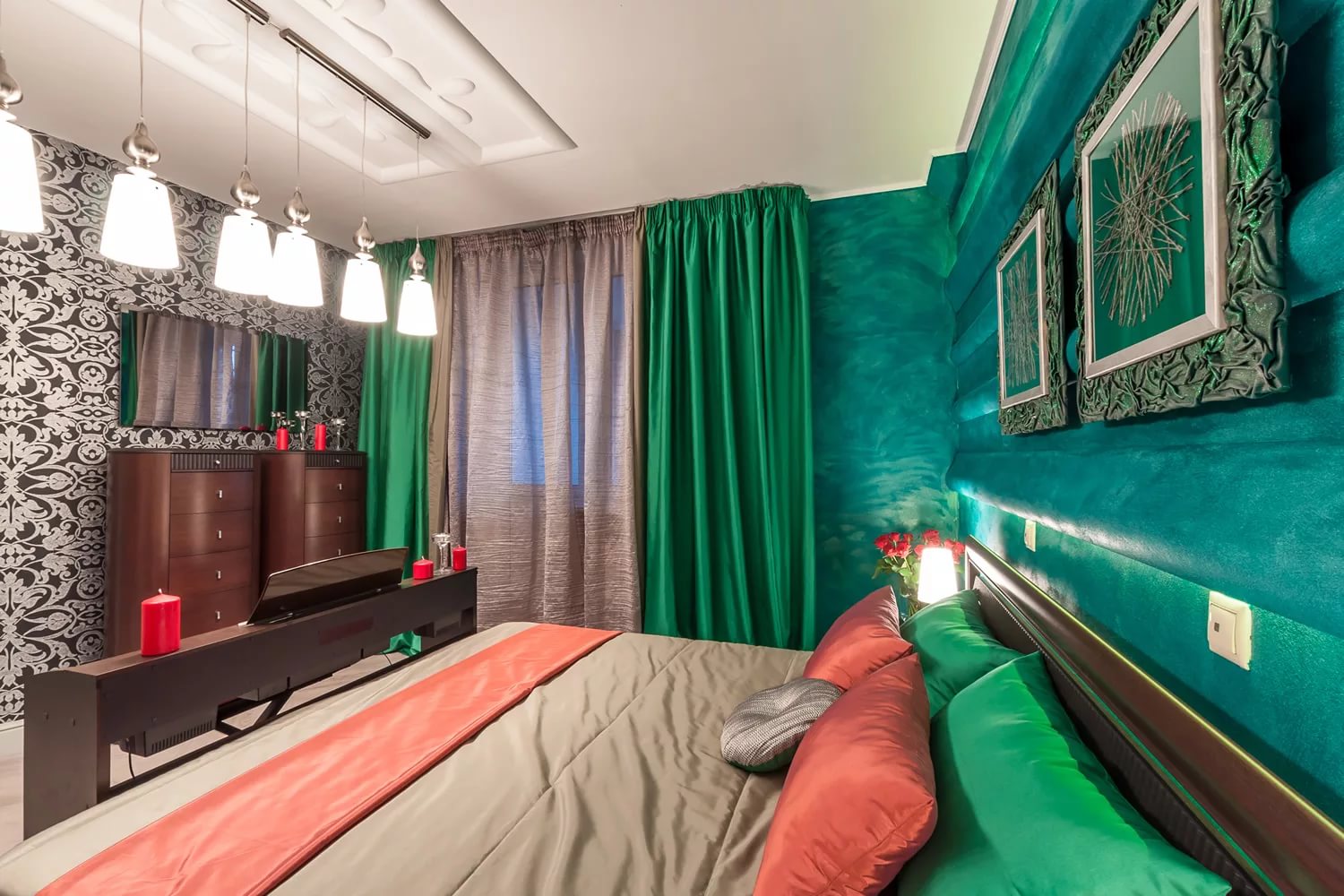Cependant, son excès à l'intérieur provoque la mélancolie et le découragement. Pour éviter cet inconvénient, vous pouvez limiter son utilisation. Par exemple, ne suspendez que des rideaux verts et un lustre.
