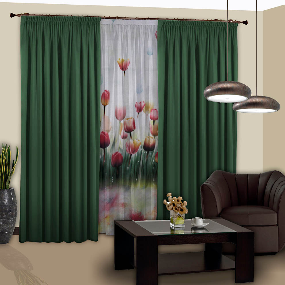 - Ne pas oublier l'éclairage général de la pièce. Pour les pièces sombres avec de petites fenêtres, les rideaux vert clair Si vous avez besoin de vous protéger de la lumière, des rideaux vert foncé de différentes couleurs vous conviennent. Sous réserve de toutes les nuances, vous obtenez le rideau vert parfait.