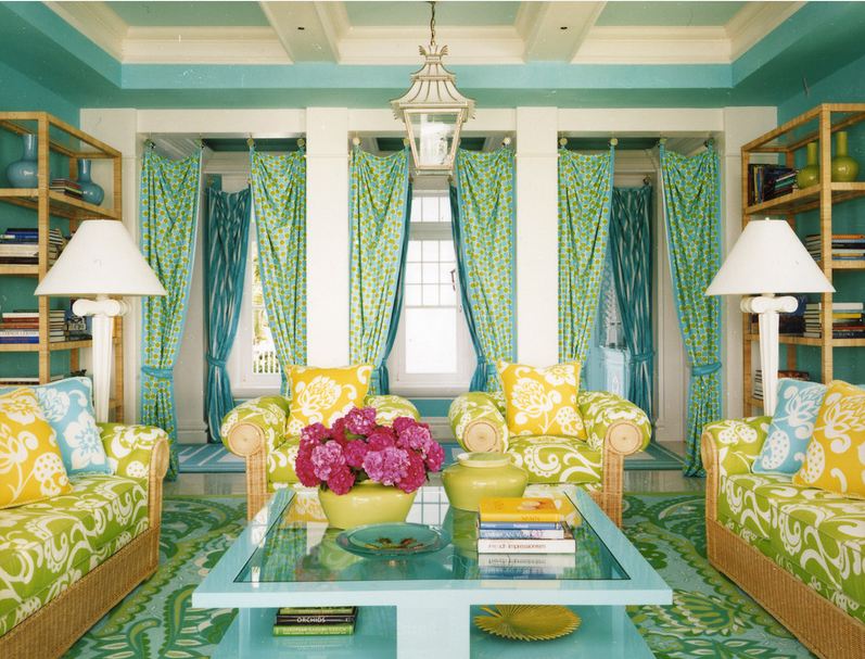 - La combinaison du bleu et du vert utilisé pour créer des salons lumineux. Ensemble, ils seront les accents de couleurs parfaits dans le salon blanc. Un tel tandem peut être atténué par la couleur brune - cela rendra l’intérieur plus calme. Les teintes bleu-vert saturées sont la base du style marin. Ensemble, ils créent une atmosphère originale et expressive.