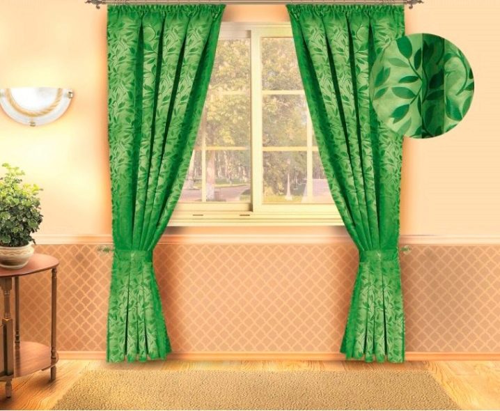 - jacquard - toile dense et texturée, de conception et de couleur différentes. Les rideaux jacquard verts ont non seulement un aspect noble, mais sont également durables.