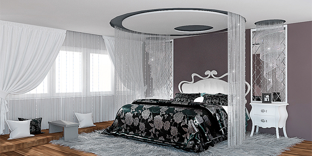 - Pour que le zonage dans une pièce permette des transitions en douceur, vous devez d’abord créer un agencement visuel de la pièce et en présenter l’aspect futur. Il est également important de prendre en compte le style dans lequel l'espace est décoré. Ainsi, par exemple, des toiles plus strictes et usagées peuvent être utilisées pour les classiques, tandis que dans le Moderne il est permis d’utiliser des textiles à motifs floraux.