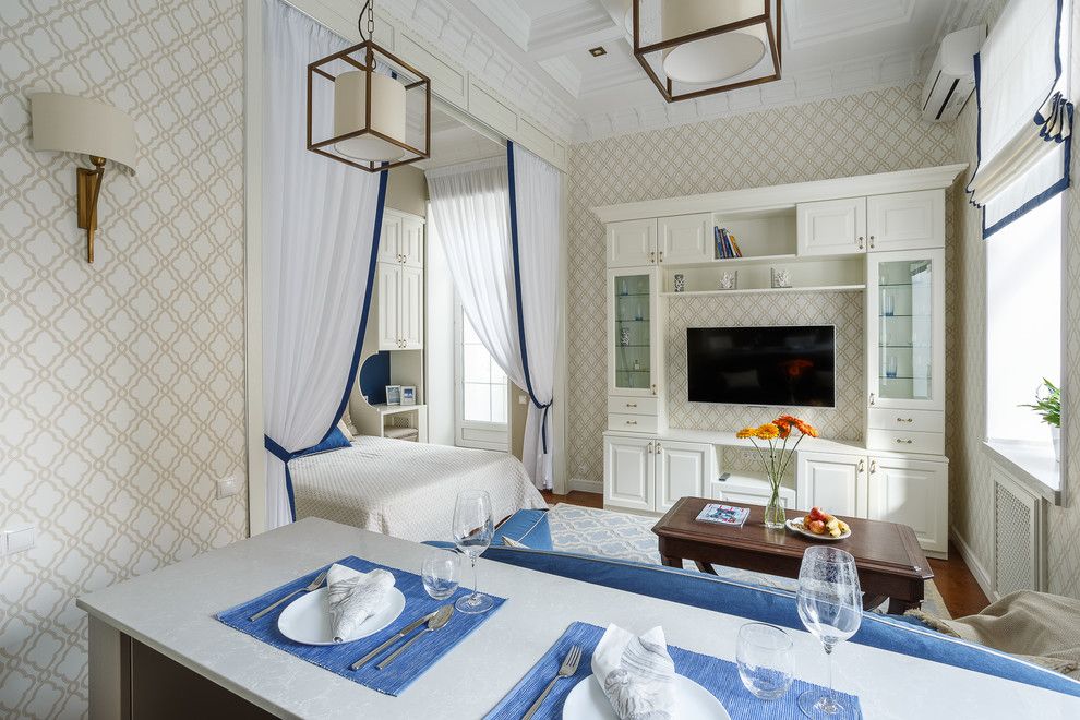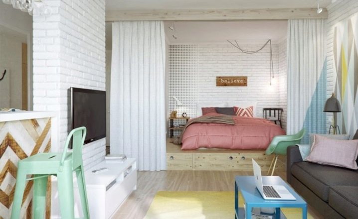 Souvent, le logement moderne est un studio. La tâche principale dans la conception d'un tel appartement est la séparation rationnelle et fonctionnelle des zones, car dans un espace ouvert se trouvent une cuisine, une chambre et un salon. De nombreuses manières différentes sont utilisées pour le zonage d'un appartement. Tout dépend de l'imagination des propriétaires, de leurs préférences et de leur style.
