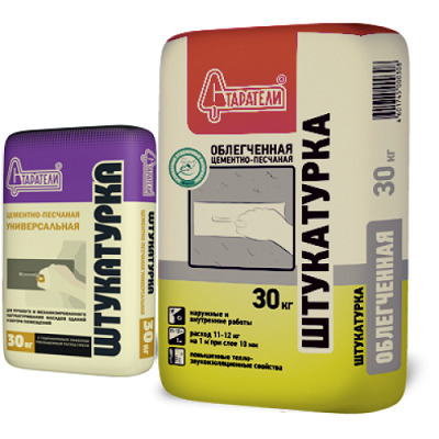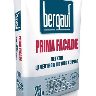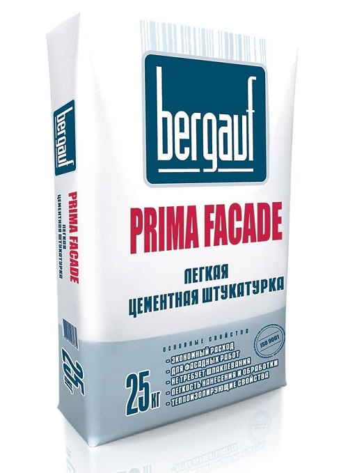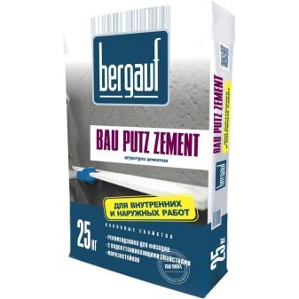 - Plâtre avant à l'épreuve de l'eau et résistant au gel Bau Putz Zement, qui est combiné avec presque tous les types de bases. Son emballage pratique est également noté - 5, 25 et 30 kg chacun.