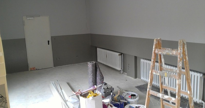 - préparation préparatoire à la finition avec enduit intérieur, papier peint, peinture et revêtement en céramique;