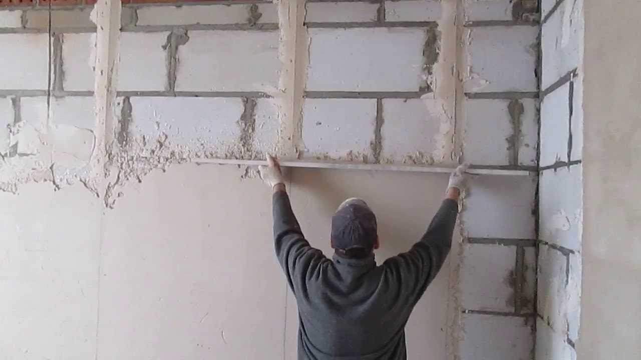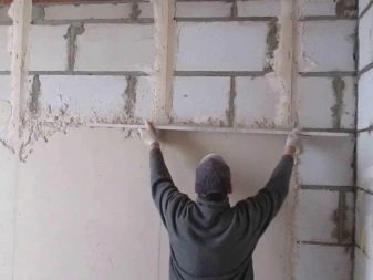 La technologie utilisée pour effectuer ces travaux nécessite une distribution uniforme de la solution. Ainsi, après la préparation des murs, l'installation des balises est effectuée. Pour éliminer le mélange en excès, suivez la règle et placez-le sur les balises.après quoi il est déplacé en mouvements de zigzag de droite à gauche.