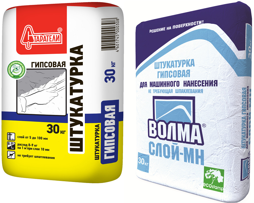 Vous pouvez acheter du plâtre de gypse, à la fois la production étrangère et nationale. Les marques Knauf et Volma ont bien fonctionné.. Leurs produits sont utilisés pour la décoration d'intérieur, il prépare parfaitement les murs pour la décoration, il n'est pas nécessaire d'essuyer leur surface. Il est à noter que quel que soit le plâtre choisi, il doit être utilisé dans le strict respect des exigences, indiqué sur l'emballage. Sinon, la solution perdra ses propriétés et la technologie d'application ne sera pas exécutée correctement.