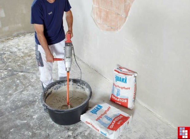 Il est nécessaire de mélanger la solution à l'aide d'une perceuse électrique, il est préférable de le faire lentement, afin que le mélange devienne une consistance homogène sans grumeaux. Ensuite, le plâtre fini donne le temps de se déposer et il est mélangé à nouveau. Il est conseillé d'utiliser la solution préparée pendant 20 minutes, car elle durcit et durcit rapidement.