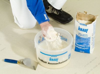 La poudre est versée dans un récipient sec et l’eau doit y être ajoutée progressivement. Pour obtenir une solution de qualité, Il est recommandé de respecter la recette de préparation. En règle générale, il faut 1,8 l d’eau pour 3 kg du mélange.. Si du plâtre colle aux parois du conteneur, ce processus peut être évité.