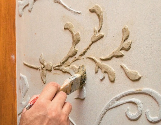 Les murs après avoir fait face au mortier de gypse sont considérés comme idéalement préparés pour le collage ultérieur avec du papier peint ou de la peinture. En outre, pour leur décoration, vous pouvez appliquer des pochoirs spéciaux et appliquer ainsi des dessins ou des motifs originaux. C'est beau, par exemple, une imitation de plâtre vénitien.