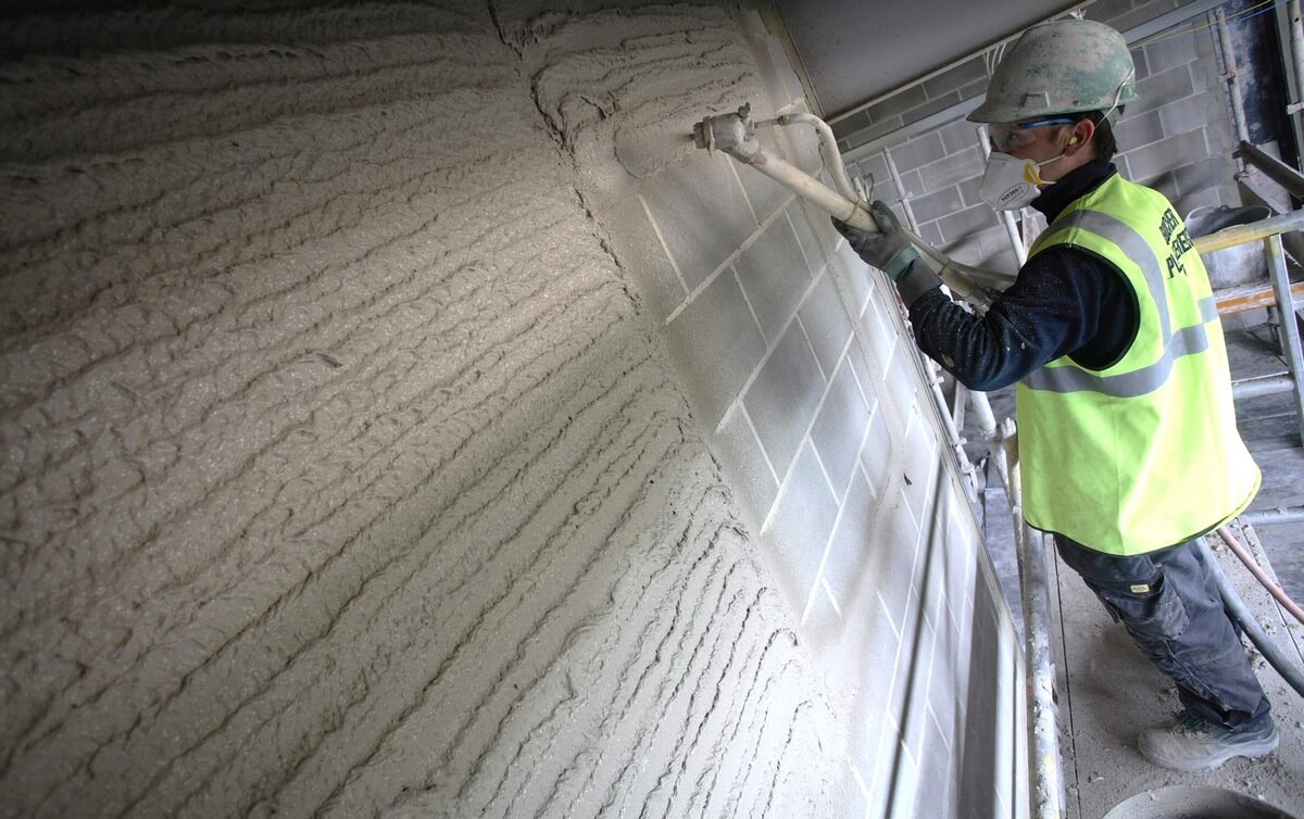 Le plâtre de gypse est souvent utilisé pour la finition des briques, il peut être appliqué sur des surfaces de ciment et de béton. Si les murs présentent des défauts importants, le mélange doit être jeté en plusieurs fois en attendant que la couche précédente soit prise.