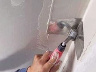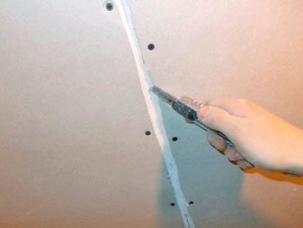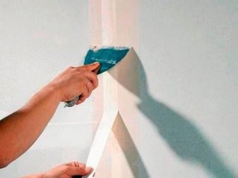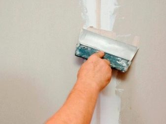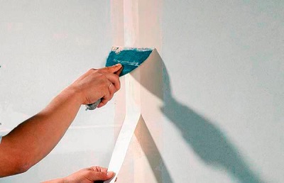 Au début, toutes les articulations doivent être réparées, car ce sont les zones les plus problématiques. Pour ce faire, vous aurez besoin de deux spatules (30 et 15 cm de large). Le premier est utile pour mettre du plâtre sur tous les joints et le second vous permettra de bien répartir le mélange. Après la première étape, toutes les irrégularités et la rugosité seront cachées.
