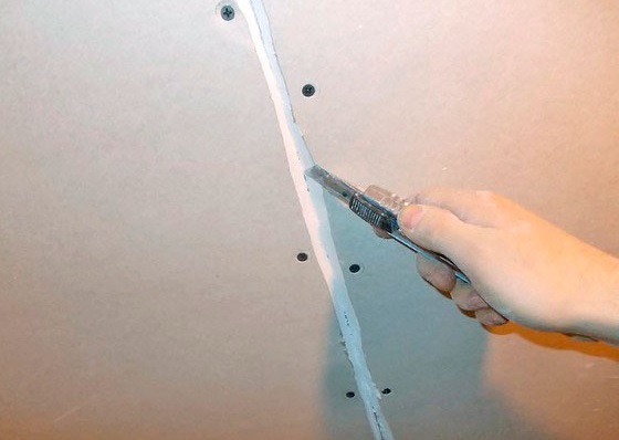 Ensuite, vous devez aligner correctement la base de la cloison sèche. Il est nécessaire de supprimer tous les détails des fixations, de supprimer les zones qui ont commencé à s’écailler. C'est généralement au niveau des articulations. Il est facile de s'en débarrasser: il suffit de les couper avec un couteau bien aiguisé.Ensuite, vous devez utiliser du papier de verre sur les joints pour éliminer les irrégularités évidentes.
