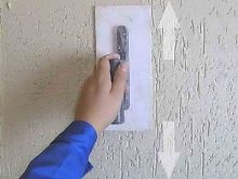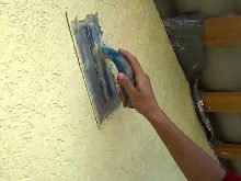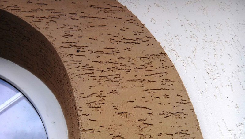 À l’intérieur, on utilise du plâtre de scolytes avec des pierres de petite fraction - jusqu’à 2,5 mm. De telles rainures seront plus harmonieuses sur les murs de la pièce. De plus, travailler avec de telles compositions est beaucoup plus facile. Ils sont plus économiques. Sa consommation dépend de la taille des grains dans le plâtre: plus les taches sont grosses, plus la couche doit être épaisse.