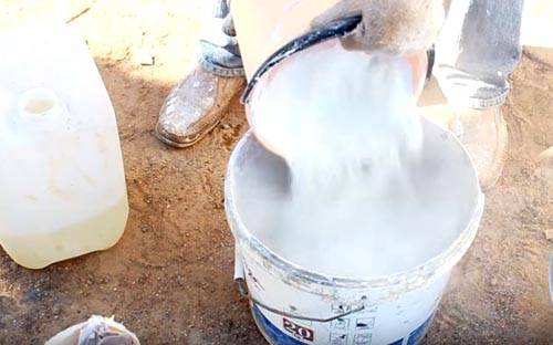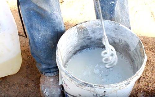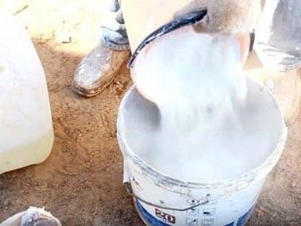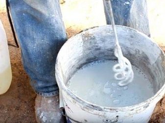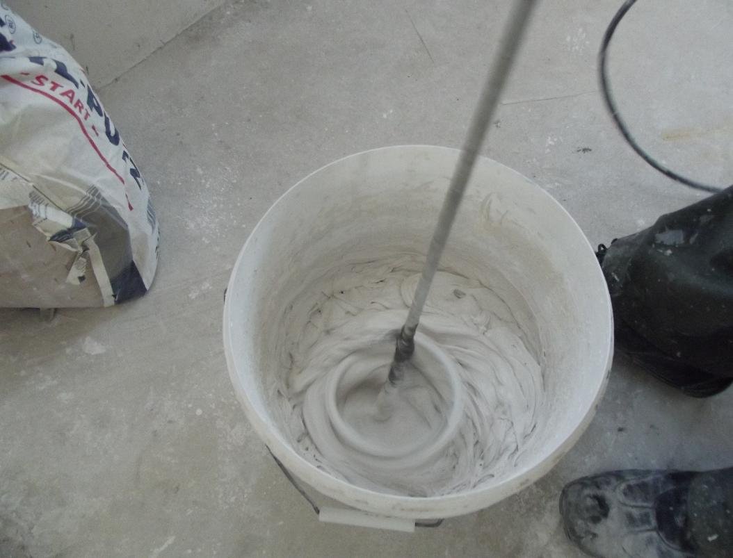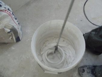 En ce qui concerne les mélanges secs, alors tout n'est pas si simple. Il est nécessaire de mesurer la quantité approximative de poudre sèche, qui sera suffisante pour couvrir un certain plan à la fois. Ensuite, vous devez le diluer avec de l'eau, mélanger soigneusement avec une perceuse avec une buse "mélangeur".