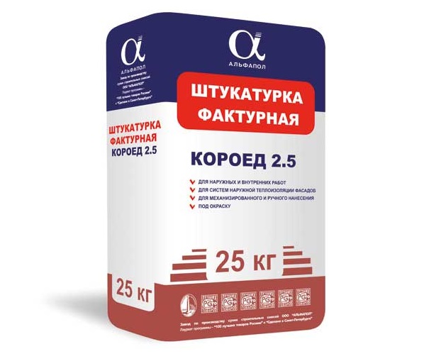 À cet égard, seule une composition à base de ciment convient au rôle de matériau pour la décoration extérieure. En elle, et les fractions sont utilisées plus souvent (à partir de 2,5 mm), et c’est moins cher. Beaucoup de gens choisissent simplement pour la décoration de façade «les scolytes» en raison du fait qu’ils contiennent divers additifs qui augmentent l’adhérence à la base.