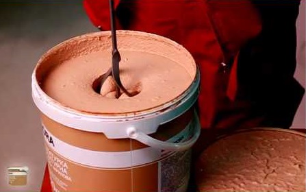 Lors du travail avec un matériau sec, il est extrêmement important de respecter les proportions indiquées. "Écorce" de différents fabricants élevés de différentes manières. Le rapport eau / mélange sec est indiqué sur l'emballage, mais correspond généralement à 4 parties du mélange pour une partie d'eau.La solution s'avère visqueuse et rappelle la consistance de la purée de pommes de terre.
