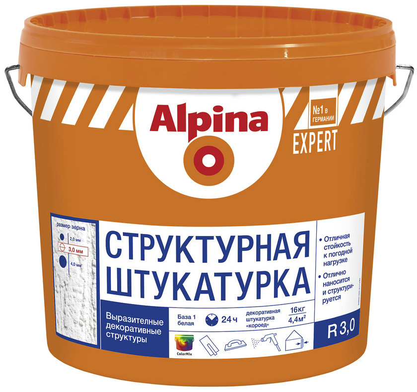 - Alpina. Le fabricant propose des formulations universelles adaptées à la façade et à l’intérieur. Les pansements structurels de cette société appartiennent à la catégorie professionnelle, c’est-à-dire qu’une certaine expérience est nécessaire pour travailler avec eux. Cependant, les acheteurs ne réagissent que de la meilleure façon possible aux produits.