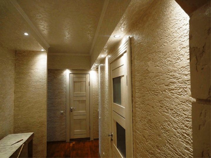 Les "scolytes" sont souvent utilisées pour la décoration intérieure, en particulier lorsqu'il s'agit d'installations commerciales: bureaux, écoles, jardins d'enfants. Cela est dû au prix raisonnable de la composition et du coût du travail d’application. Comme indiqué ci-dessus, pTravailler avec un tel plâtre est facile, alors les services des ouvriers coûtent un peu cher.