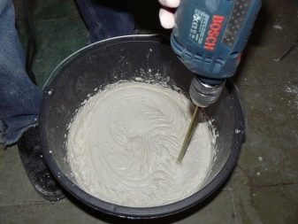 Pour pétrir un plâtre de qualité, vous devez respecter un certain ordre. Au stade initial, mélanger tous les composants sous une forme sèche. D'abord dans un récipient pour mélanger verser de l'eau. Mieux vaut boire, pas technique. Dans le liquide, on verse 6 à 8 truelles du mélange préparé dans la première étape. La solution doit être mélangée en utilisant un mélangeur spécial ou une perceuse avec une buse similaire.