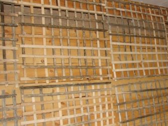 - À la deuxième étape de la préparation, de petites lattes de bois en forme de bardeau sont placées à la surface. Au lieu de cela, il est permis d'utiliser un maillon de chaîne en métal d'une épaisseur de 3 mm. Les experts soulignent qu'il doit être fixé avec des rails spéciaux (et non au mur lui-même).