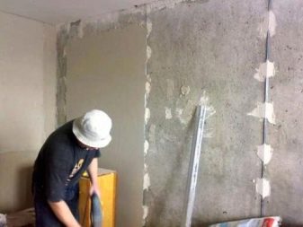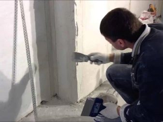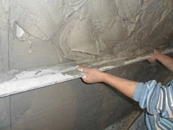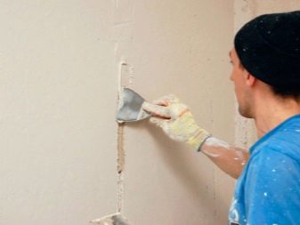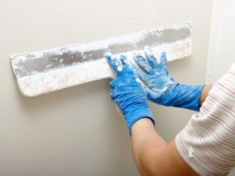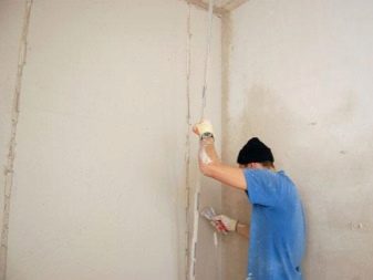 La tâche principale des surfaces de nivellement en plâtre. Pour ce faire, vous devez d’abord mesurer la courbure en utilisant un niveau de bâtiment. Si la goutte est inférieure à un centimètre, vous pouvez utiliser du mastic. Les déviations significatives sont mieux éliminées avec du plâtre.