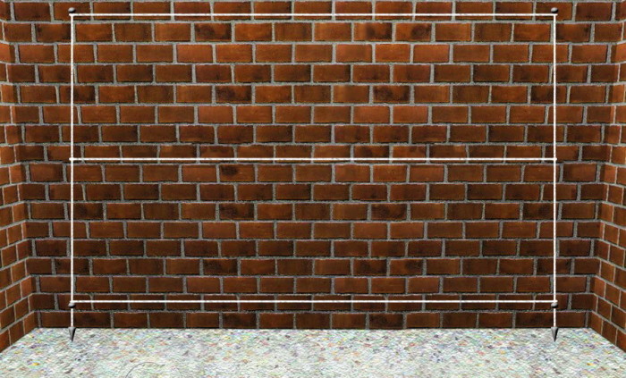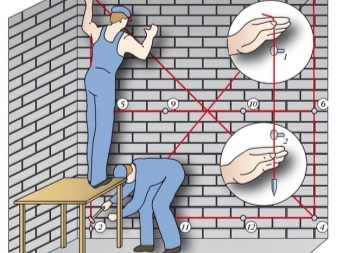 - Premièrement, les chevilles sont installées sur la surface à une distance de 15 cm du sol et du plafond.
