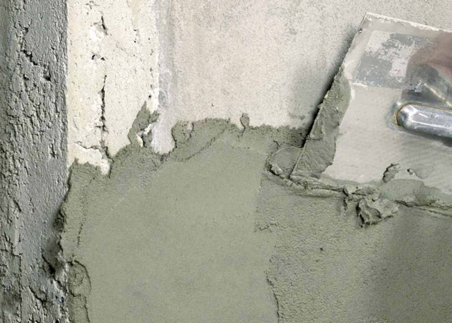 - Lors du plâtrage d'une surface de béton ou de brique, l'adhérence de la composition à la base se produit non seulement de manière mécanique, mais également par réaction chimique. Cependant, le gypse n'a pas de deuxième propriété. Il est tenu mécaniquement sur le mur. Si la zone à traiter est soumise à des vibrations ou à des secousses, le plâtre de gypse risque alors de tomber. Vous pouvez utiliser diverses charges (fibres synthétiques ou naturelles, copeaux de pierre, verre, perles, sciure de bois) pour donner la texture à la base à l'aide de plâtre.