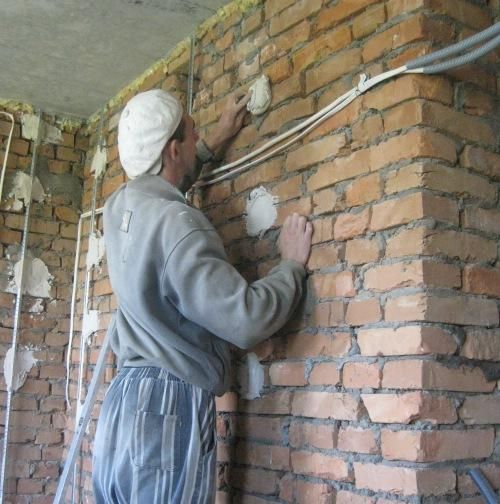 Pour le renforcer, il est préférable d'utiliser un treillis métallique comme renfort. Comme la brique de parement a des côtés lisses, il est difficile de poser du plâtre dessus. Afin d’augmenter l’adhérence à la surface, il est recommandé d’apprêter d’abord la base avec des composés spéciaux. Et aussi utiliser un treillis d'armature.