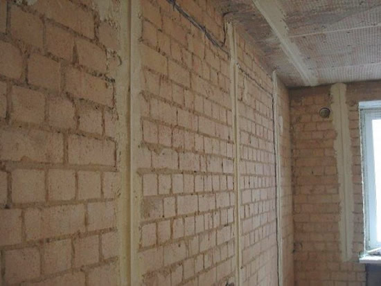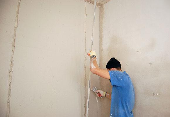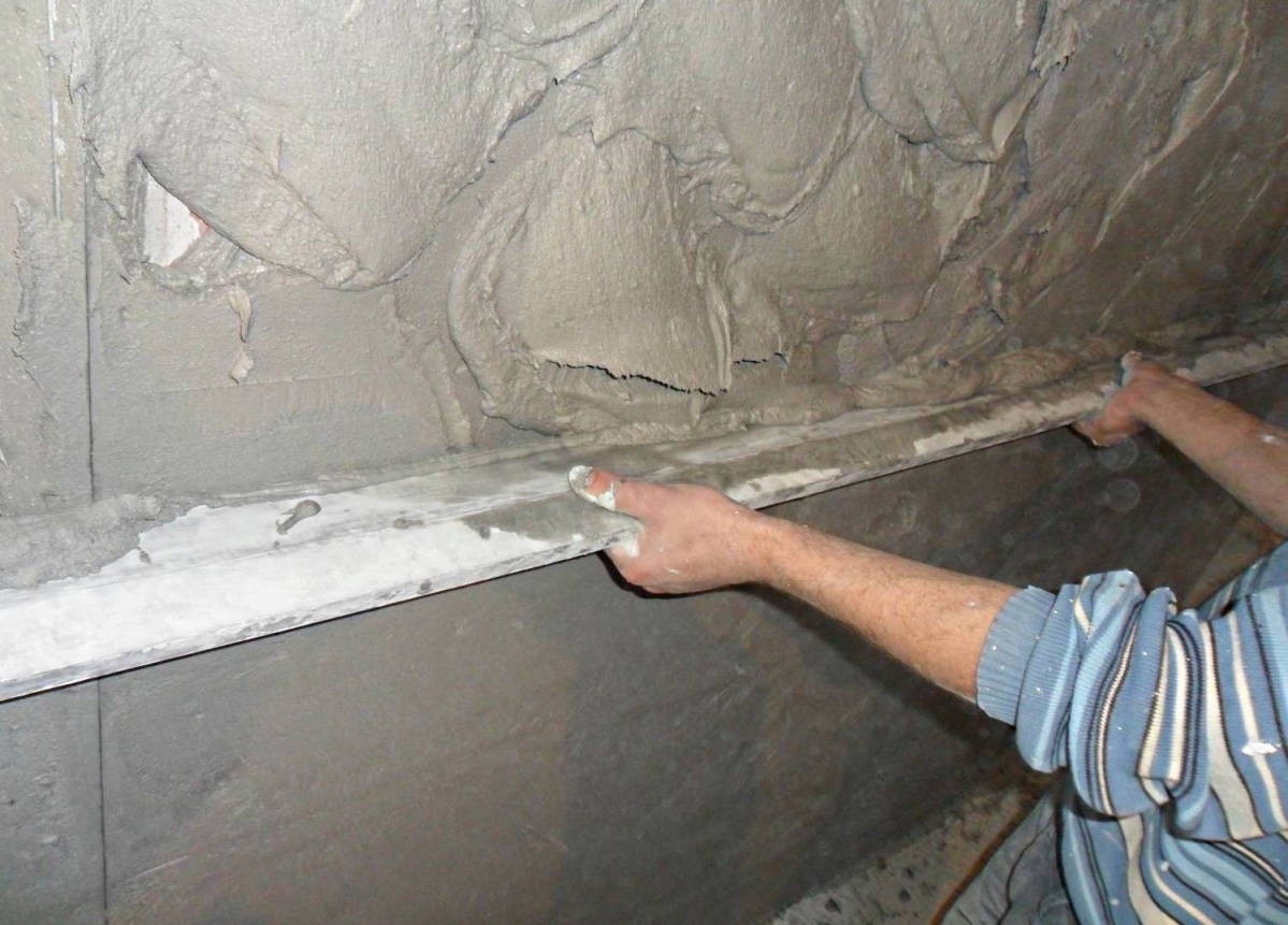 Le contrôle vertical est effectué à l'aide d'un fil à plomb. Le plâtre est appliqué progressivement du phare au phare. Une fois la solution définie, les profils de balise sont supprimés. Les vides qui en résultent sont remplis de plâtre. Après cela, toute la surface est polie pour obtenir un fini lisse.