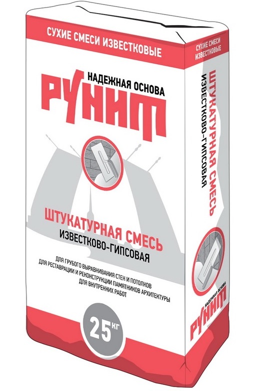 - Plâtre à la chaux universel, adapté à tout type de base, sauf en béton. En outre, il présente un coefficient de résistance à l'humidité élevé.