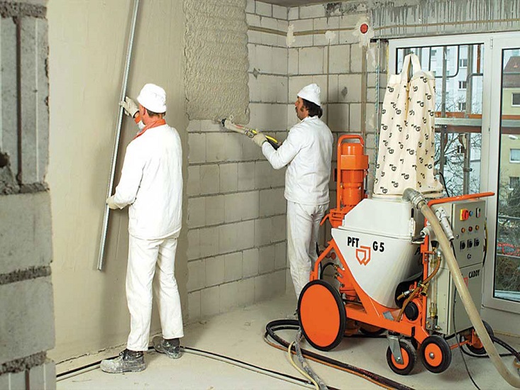 Le plâtrage à la machine est réalisé avec une composition spéciale qui comprend, en plus de la base, des additifs spéciaux et des durcisseurs.