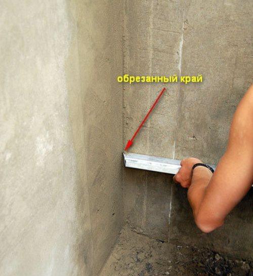Dans ce cas, il existe deux cas de plâtrage: avec l'alignement des deux surfaces ou un. Dans le second cas, un mur du coin intérieur est traité. La solution est appliquée par la méthode habituelle, puis étirez la règle de l’angle le long de la base. Ensuite, la truelle de coin a frotté le coin de haut en bas. En tant que renforcement, vous pouvez utiliser un treillis de renforcement ou un profilé métallique perforé spécial.