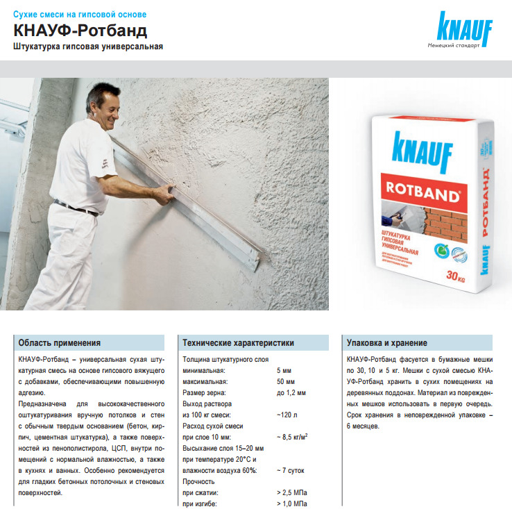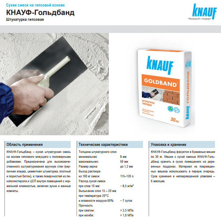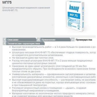 Mélanges pour plâtre Knauf: caractéristiques techniques des compositions