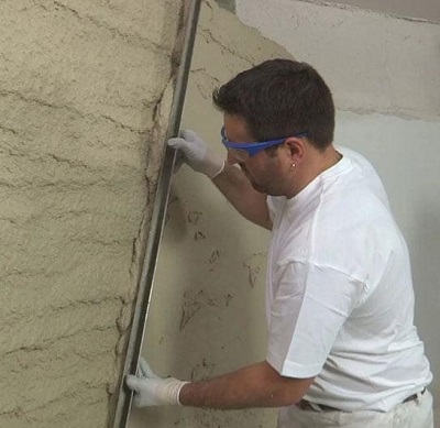 - En utilisant du plâtre, vous pouvez disposer une couche d’épaisseur jusqu’à 5 centimètres. Cela peut être fait sans une procédure de pulvérisation préalable et dans un seul hangar.