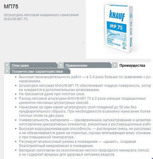 - Ductilité. Le mélange est caractérisé par une grande plasticité, augmentant ainsi la productivité du travail des maîtres. D'excellents résultats sont obtenus en utilisant une méthode mécanique d'application de la composition, ainsi que des stations de plâtrage spéciales.
