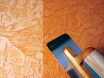 - Type vénitien. Un des types les plus spectaculaires, donnant à la surface des murs une similitude visuelle à une surface en marbre. Le type vénitien de revêtement en plâtre est connu depuis l'époque des anciens Romains. La chaux éteinte, la farine de marbre et d'autres composants sont ajoutés pour créer une similitude. À l'aide d'émulsifiants, le degré d'épaisseur du mélange est atteint.
