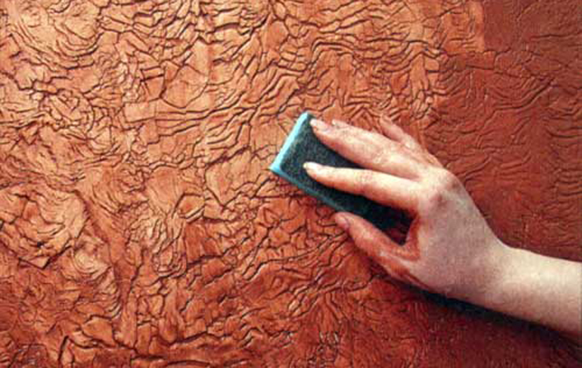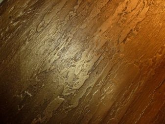 - Type texturé. Il donne à l'enduit l'effet de "pierre ancienne", "peau", "soie". Tous les effets sont obtenus grâce à l'utilisation d'outils spéciaux et au respect de techniques spéciales.Comprend l'inclusion de résine, ainsi que des mélanges de cire, fixant l'image.