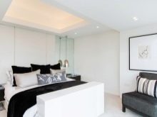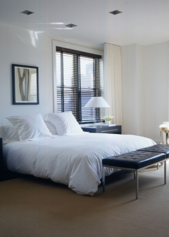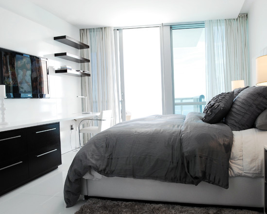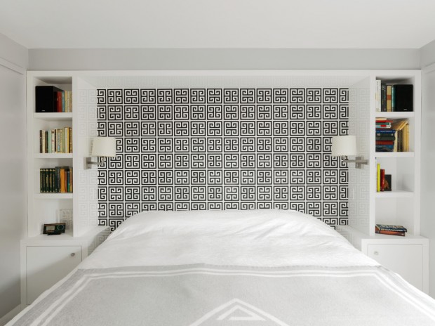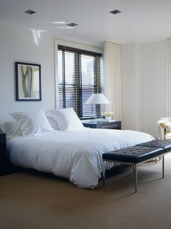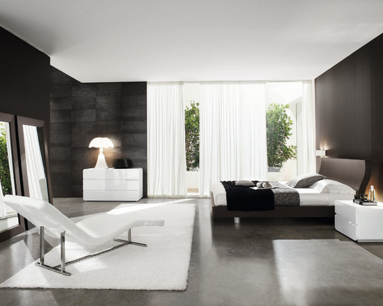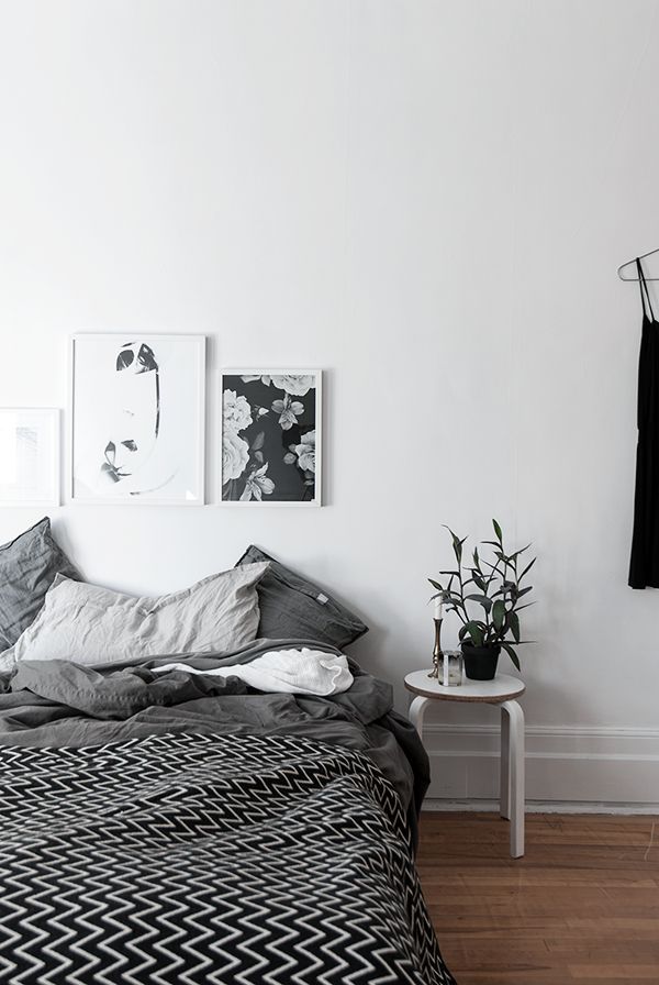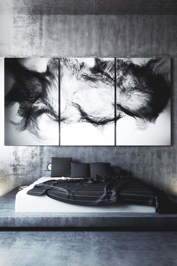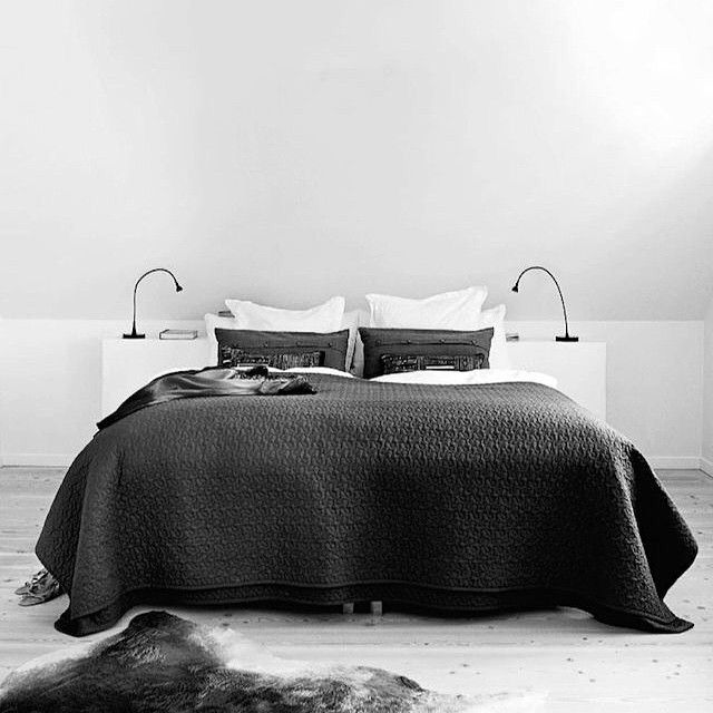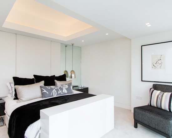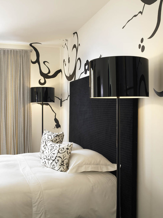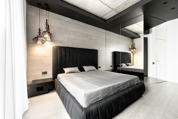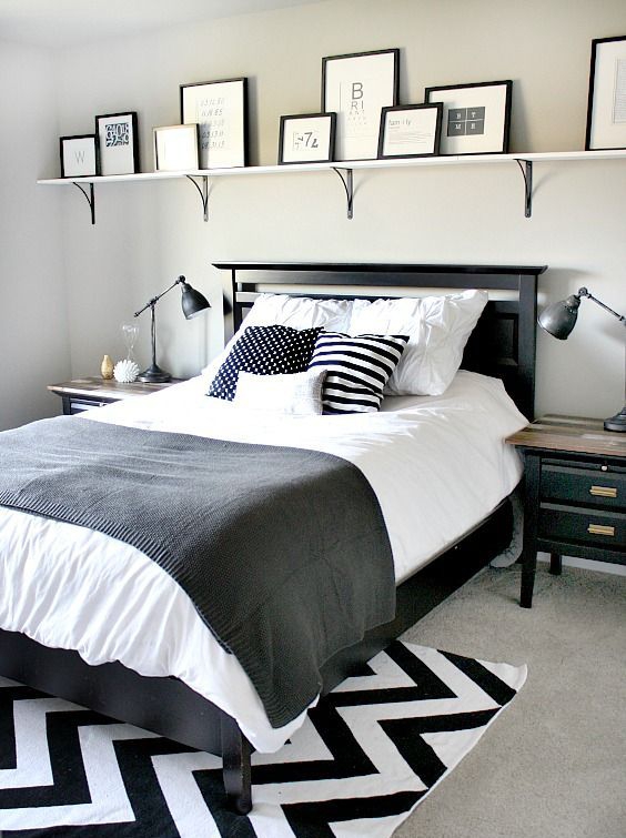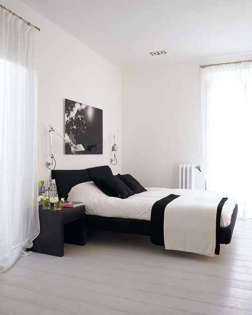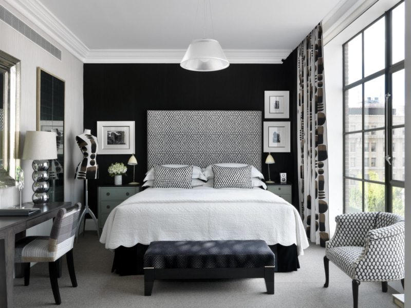 Conception de chambre à coucher dans un ensemble noir et blanc - le choix de personnes pragmatiques qui adhèrent à la brièveté et à la rigueur.
