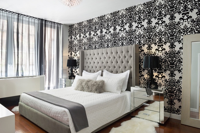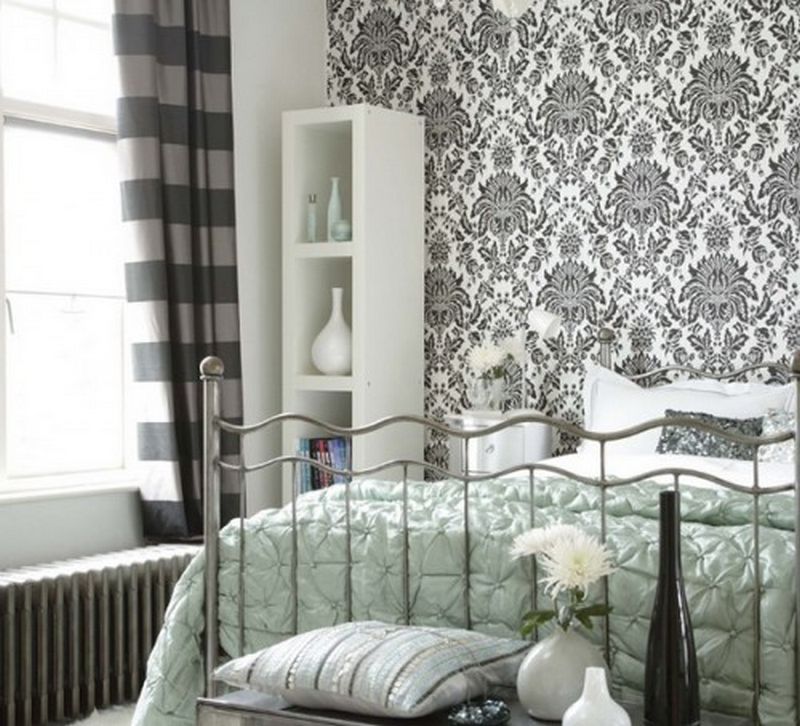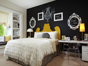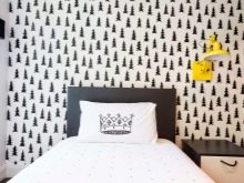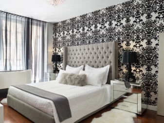 Si vous souhaitez utiliser la décoration d'images, celles-ci sont utilisées uniquement en combinaison avec des surfaces monochromes, noir et blanc. Rechercher efficacement un papier peint avec des strass noirs. Les éléments brillants refléteront la lumière et joueront au soleil.