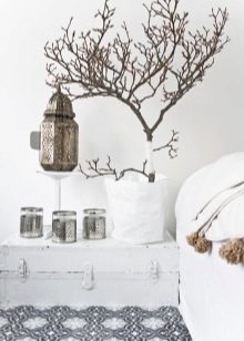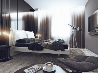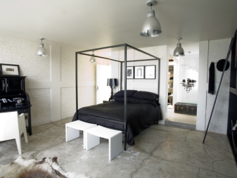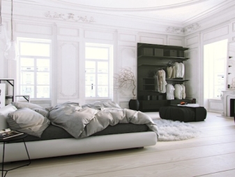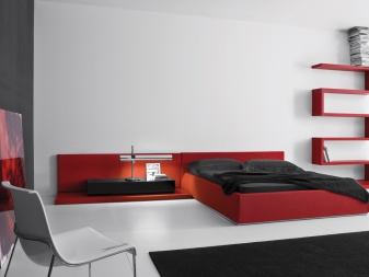 Malgré la simplicité et la facilité, cette conception de la chambre à coucher est très inhabituelle et diffère de la décoration standard. Si vous décidez d'essayer un tel style, préparez-vous à de profonds changements.