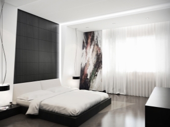Très probablement, une personne a une pensée rationnelle et une grande ponctualité. En outre, un tel intérieur est apprécié par les personnes qui choisissent des styles inhabituels et non standard. La palette de couleurs la plus commune de la chambre à coucher - ce sont des couleurs pastel douces et délicates, qui sont le contraire de la combinaison noir et blanc.