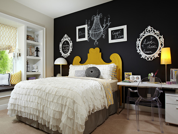 Pour rendre agréable la présence d'un adolescent dans cette pièce, il est recommandé de choisir le blanc comme couleur dominante. Il rendra la pièce visuellement plus grande, plus lumineuse et plus agréable. En outre, vous ne pouvez pas vous passer d’accents de couleur supplémentaires et d’ajouts qui rendront l’atmosphère de la pièce plus dynamique et plus dynamique.