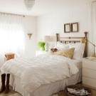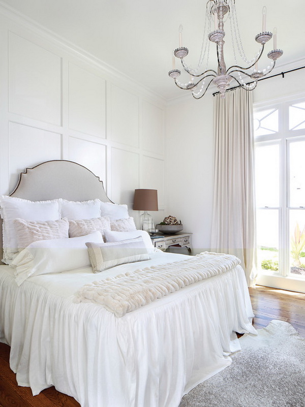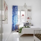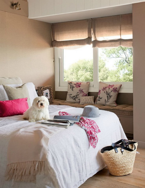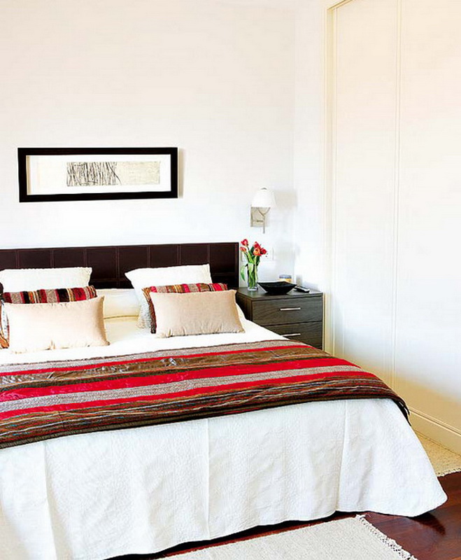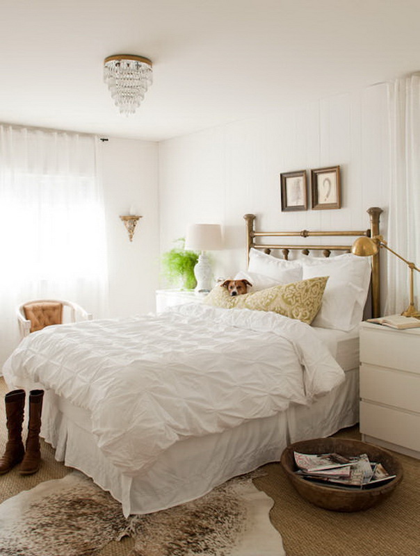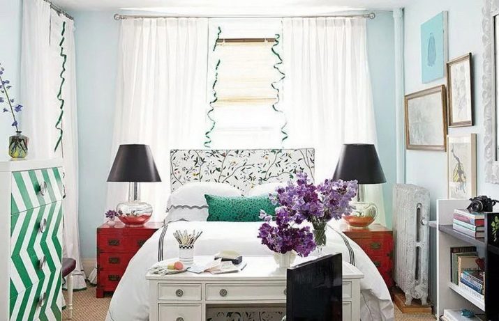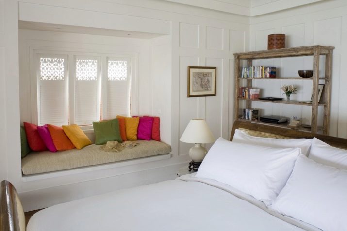 Certes, cela ne devrait pas être une chambre exclusivement blanche. L'intérieur stérile procure une sensation de fraîcheur, il est souvent inconfortable. Revive l'intérieur peut 1-2 points contrastés. Des détails en bois naturel, par exemple un couvre-lit, des rideaux ou des coussins décoratifs lumineux rendront l'intérieur plus confortable et résidentiel.