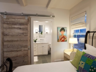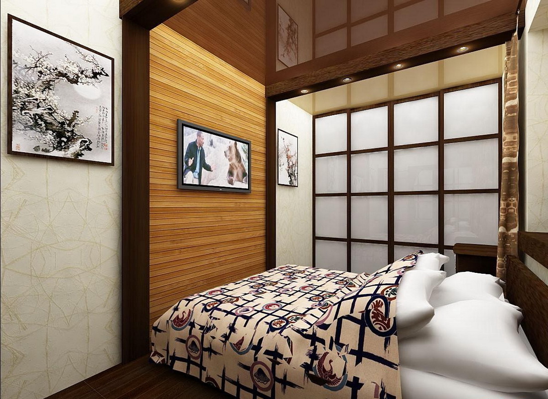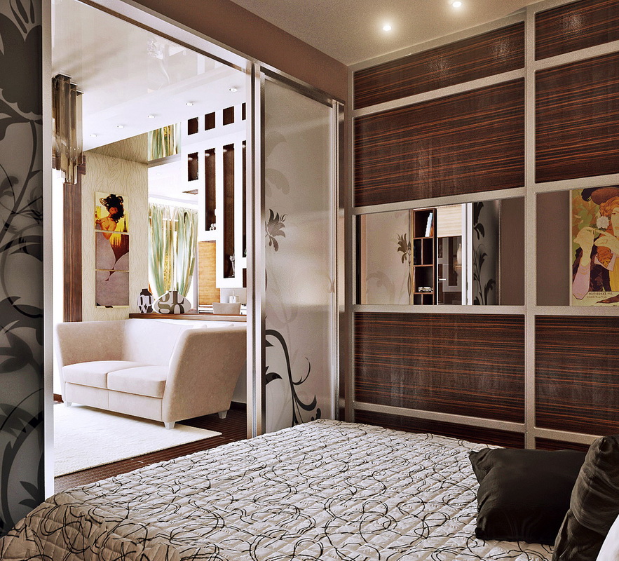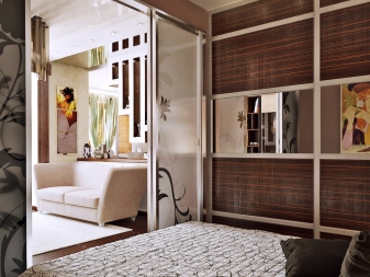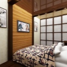 La simplicité du design, ainsi que les éléments de décoration de ces styles, élargiront visuellement la pièce. Si vous préférez les expériences, essayez le style écologique. Les détails caractéristiques du style high-tech seront également mis en place. Les appareils ménagers peuvent être placés sur le mur, en le fixant avec des supports, ce qui permettra également d'économiser de tels carrés de valeur. Il est préférable de réorganiser la porte pendant la réparation afin qu'elle s'ouvre dans le couloir. Une bonne option est une porte coulissante. Pour une chambre de 9 mètres carrés. m option idéale porte pliante dans le style japonais.