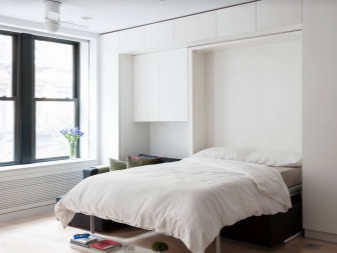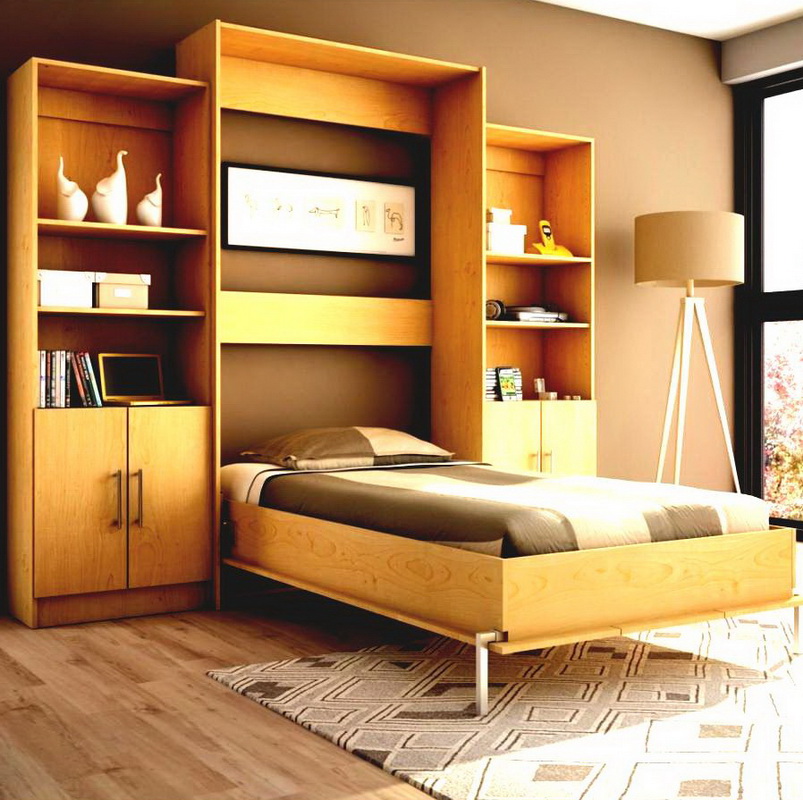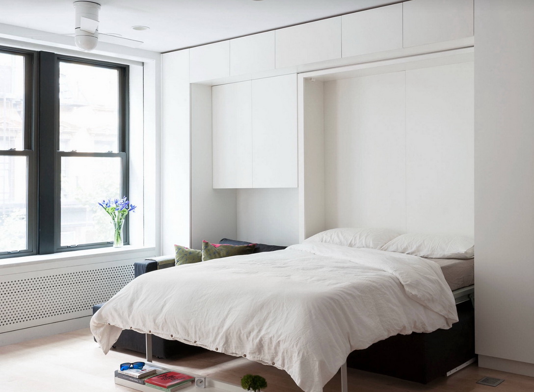 - Lit de Murphy. Un bon exemple d'utilisation de l'espace est le modèle intégré d'un lit doté d'un mécanisme de levage (le lit escamotable est le nom de l'inventeur). Pendant une nuit de sommeil, le lit est à terre, il peut être utilisé, le matin il monte dans le plan des placards.L'endroit où se trouvait le lit la nuit peut être utilisé pendant la journée pour des besoins divers.
