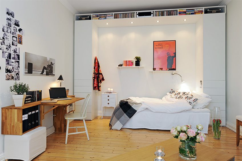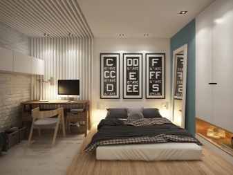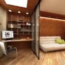 - La combinaison de deux zones à la fois. Vous pouvez mettre un lit et placer dans un endroit pratique une table, après avoir équipé un lieu de travail.