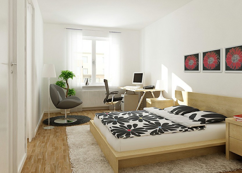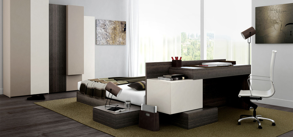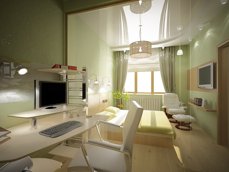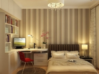 Si votre chambre est petite, il vaut la peine de ramasser des objets compacts, notamment un lit et une table. Vous pouvez également organiser de manière optimale l'espace dans la pièce, en utilisant les technologies modernes. Par exemple, vous pouvez organiser votre bureau dans un placard intégré ou séparer l’espace de travail par un écran. Dans tous les cas, vous devriez porter une attention directe au fait que la chaise était située dos au lit. Vous n'êtes pas obligé de voir votre lieu de repos, cela vous distrait considérablement des activités de travail intenses.